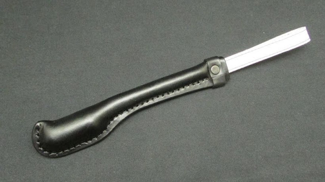 "This is a beautiful circa 1890s or early 1900s “sap” police club. It is made of leather, lead and spring steel."